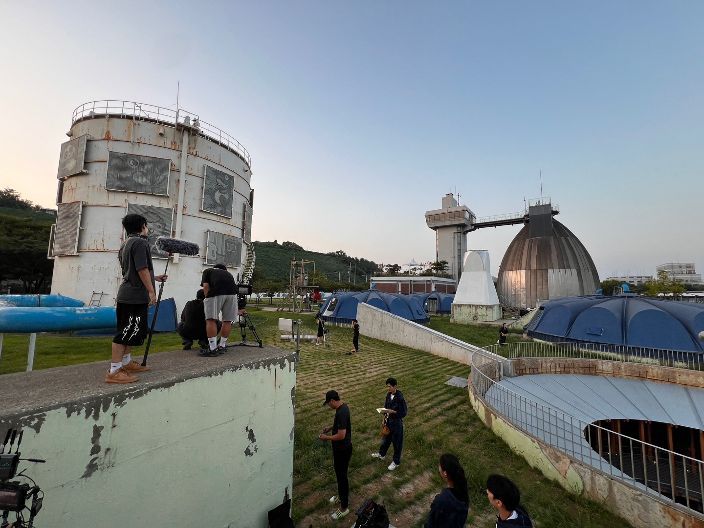 <사라지는 세계>는 한 사람의 머릿속 세계를 현실화하는 디제시스를 목표로 했다. 한 사람의 꿈 속 세계, 머릿속 공간이라는 영화의 핵심 컨셉을 대사 없이도 설명할 수 있는 프로덕션 디자인과 로케이션 선택이 가장 중요하다고 생각했다. 우연히 시흥시에 있는 한 수자원센터(를 리모델링한 문화공간)에 답사를 진행했고, 공간을 둘러보는 순간 미리 영화를 보는 듯한 기분이 들었다. 원형의 푸른 색 돔과 구조물들, 나선형 계단, 농축조와 지하실. 그리고 공간을 보고 나니 써지지 않던 시나리오에 속도가 붙기 시작했다. 머릿속에만 그리던 여러 이미지들을 미술감독을 비롯한 모든 팀원들이 함께 구현해나갔다.